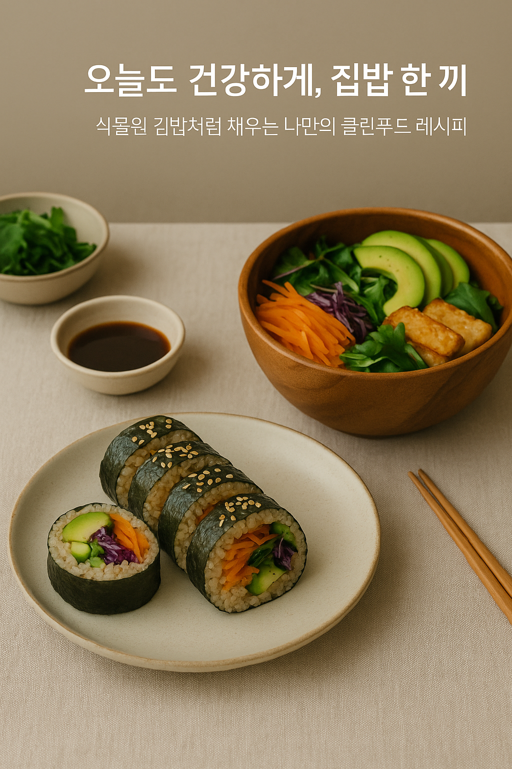 그럼, 오늘은 나만의 '식물원 김밥' 스타일로, 건강한 집밥 레시피를 같이 만들어볼까요? 🌱